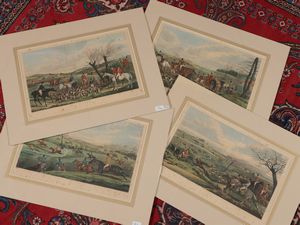 passe-partout cm39x47 (4) Fine del XIX secolo quattro litografie, colorate, con passe-partout, tracce di foxi [..]