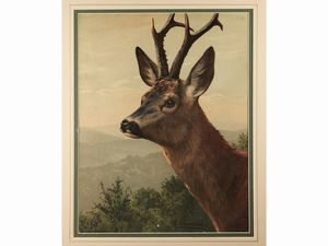 passe-partout cm 44,5x30 e cm 46x37 (4) XIX secolo due acquerelli e due cromolitografie, con passe-partout