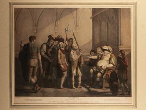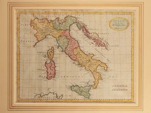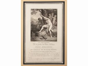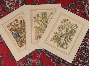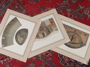 passe-partout cm 54x64 (3) XVIII secolo tre incisioni su rame, colorate, con passe-partout