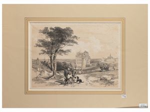 passe-partout cm 52x40 (7) XVIII secolo sette incisioni su rame, con passe-partout, tracce di foxing