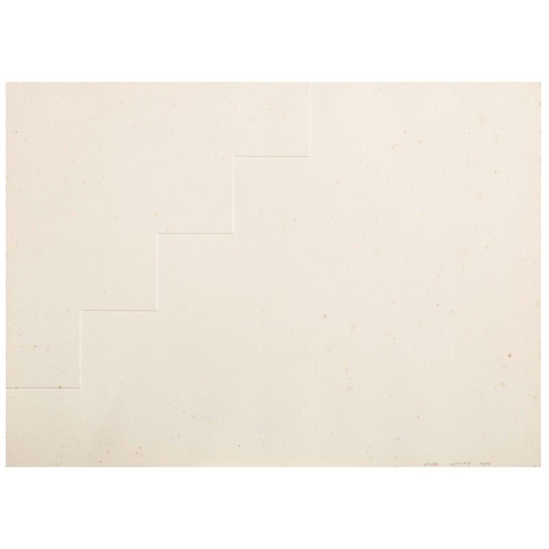 NICOLA CARRINO (Taranto 1932 - Roma 2018) Senza titolo 1969/1970 stampa-oggetto trasformabile carta bianca Rosaspina Fabriano; 2 fogli-modulo cm 35x49 esemplare 41/80 entro cartellina originale edita in occasione della XXXV Biennale di Venezia in 100 esemplari numerati e firmati