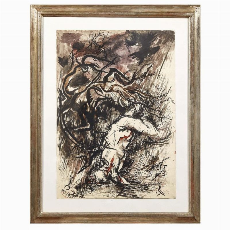 L'opera è accompagnata da autentica su foto degli Archivi Guttuso, Roma.
