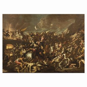 Scuola napoletana, sec. XVII SCENA DI BATTAGLIA CON PONTE SULLO SFONDO olio su tela, cm 97,5x136 Neapolitan [..]