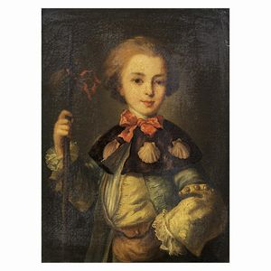 Scuola veneta, sec. XVIII RITRATTO DI FANCIULLO COME SAN GIACOMO olio su tela, cm 41x33 Venetian school, 18th [..]