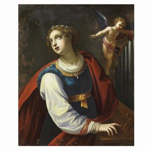 Scuola emiliana, sec. XVII SANTA CECILIA olio su rame, cm 38x31,5 Emilian school, 17th century SAINT CECIL [..]