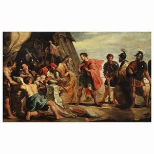 Seguace di Pietro Paolo Rubens, sec. XVII INTERPRETAZIONE DEL SACRIFICIO olio su tavola, cm 79x128 Follower [..]