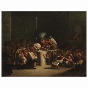 Faustino Bocchi (Brescia, 1659 - 1741) L'ALBERO DELLA CUCCAGNA olio su tela, cm 46x59 THE GREASY POLE oil on [..]