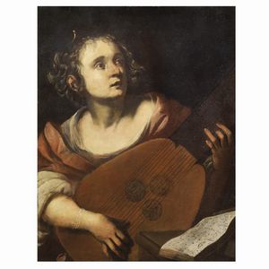Artista Caravaggesco, sec. XVII SUONATRICE DI MANDOLINO olio su tela, cm 82x64,5 Caravaggesque painter, 17th [..]