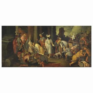 Scuola fiamminga, sec XVIII ADORAZIONE DEI MAGI olio su tavola, cm 50x106 Flemish school, 18th century ADORATION [..]