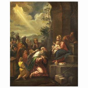 Scuola veneta, sec. XVIII ADORAZONE DEI MAGI olio su tela, cm 72x86 Venetian school, 18th century THE ADORATION [..]