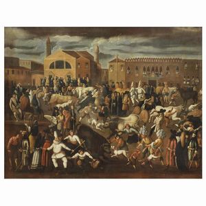 Scuola veneziana, sec. XVIII CACCIA AI TORI IN PIAZZA SAN MARCO A VENEZIA olio su tela, cm 114x145,5 Venetian [..]