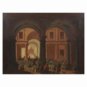 Scuola romana, sec. XVIII LA CACCIATA DEI MERCANTI DAL TEMPIO olio su tela, cm 112x87,5 Roman school, 17th [..]