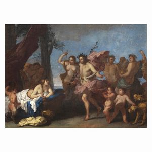 Giulio Carpioni (Venezia 1613- Vicenza 1678) BACCANALE CON BACCO E ARIANNA olio su tela, cm 43,5x60,5 BACCHANAL [..]