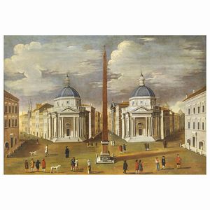 Scuola romana, sec. XVIII PIAZZA DEL POPOLO (ROMA) olio su tela, cm 95x135 Roman school, 18th century PIAZZA [..]