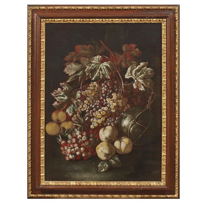 NATURA MORTA CON UVA BIANCA E NERA E PESCHE