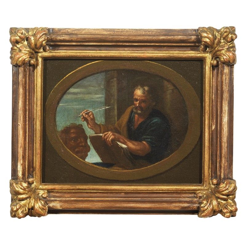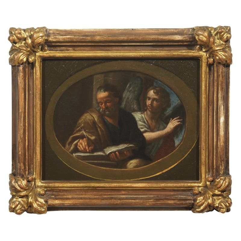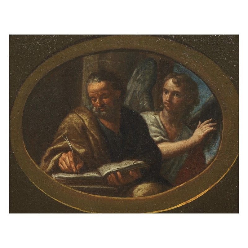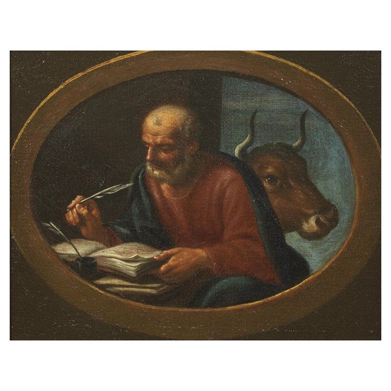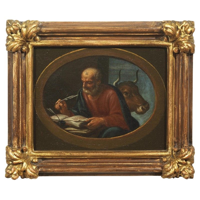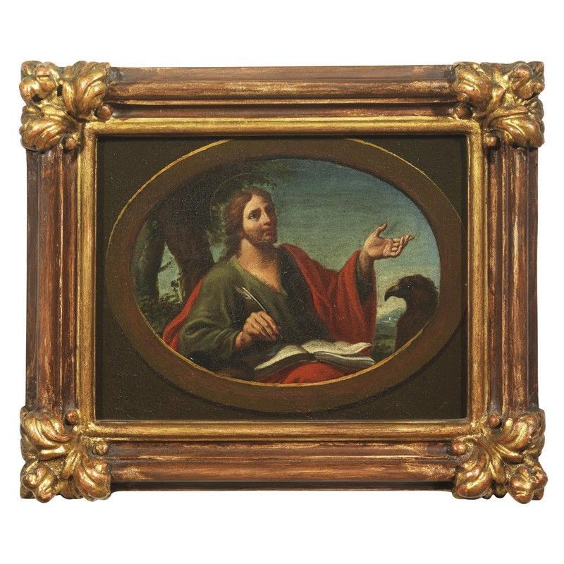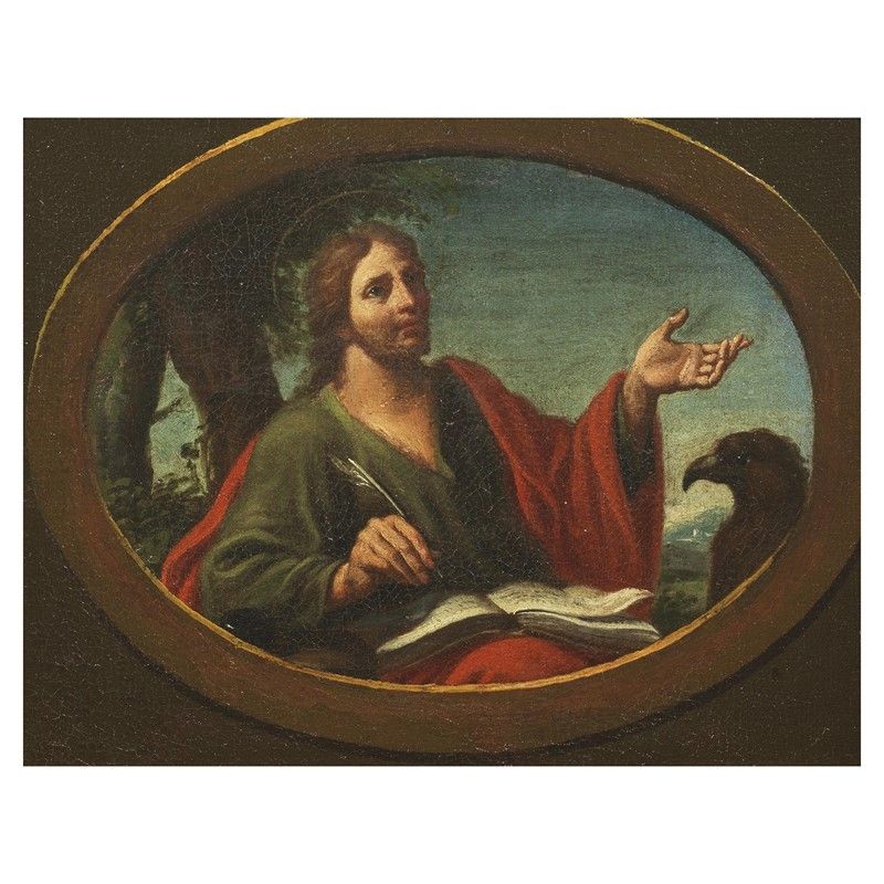 Venetian School, late 17th - early 18th century SAINT JOHN THE EVANGELIST SAINT LUKE THE EVANGELIST SAINT MATTHEW THE EVANGELIST SAINT MARK THE EVANGELIST four paintings, oil on canvas, cm 16x22 (4)