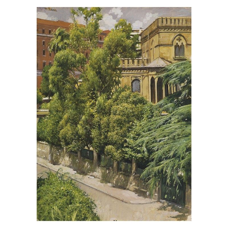 Adolf Hirémy Hirschl (Temesvàr 1860 - Roma 1933) VILLINO IN VIA SICILIA, ROMA tecnica mista su carta, cm 38,5x28 retro: iscritto “241”, timbro “Adolf Hiremy 1860-1933”