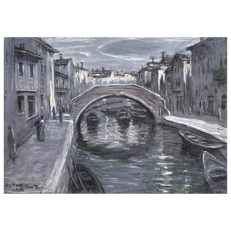 VENICE pastel on cardboard, 50x70 cm signed and dated 1936 lower left on the reverse: label Comune di Verona, Musei e Gallerie d'Arte for authenticity