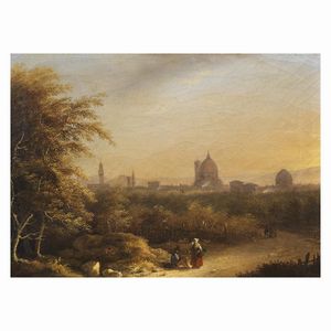 Scuola toscana, sec. XIX VEDUTA DI FIRENZE olio su tela, cm 26,5x37 Tuscan school, 19th century VIEW OF FLORENCE [..]