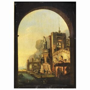 Scuola dell'Italia settentrionale, sec. XIX SCENA PORTUALE olio su tavoletta, cm 22,5x16,5 North Italian school, [..]