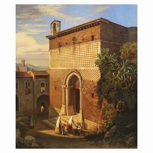 August Koch (1818 - 1878) CHIESA MEDITERRANEA olio su tela, cm 75x63,5, senza cornice firmato e datato “1846 [..]