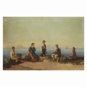 Scuola napoletana, sec. XIX PESCATORI SULLA SPIAGGIA a) olio su tela, cm 50x76,5 b) olio su tela, cm 50x75,5 [..]