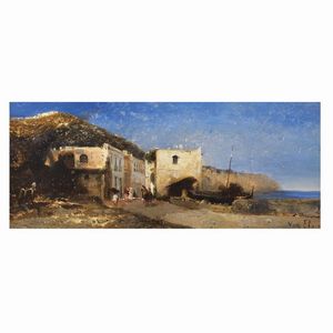Giuseppe Carelli (Napoli 1858 - Portici 1921) SULLA SPIAGGIA olio su tavoletta, cm 20x38,5 firmato in basso a [..]