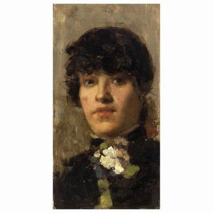 Attribuito a Michele Gordigiani (Firenze 1835 - 1909) RITRATTO DI GENTILDONNA IN BIANCO olio su tela, cm 62x48 [..]
