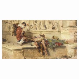 Sinibaldo Tordi (Roma 1876 - 1955) GIOCANDO olio su tavoletta, cm 27x17,5 firmato e iscritto “Firenze” [..]