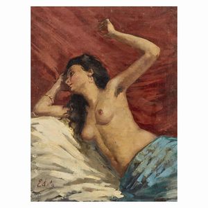 Eliseo Sala (Milano 1813 - Triuggio 1879) NUDO DI DONNA cartone telato, cm 49x37,5 firmato in basso a sinistra [..]