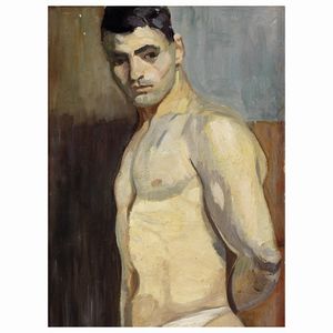 Scuola europea, primo sec. XX NUDO VIRILE olio su cartone, cm 42x31 European school, early 20 century MALE NUDE [..]