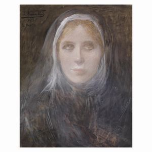 Italo Nunes Vais (Tunisi 1860 - Firenze 1932) VOLTO DI DONNA tecnica mista su cartone, cm 43,5x34,5, senza cornice [..]