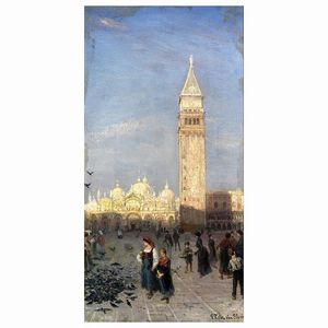 Pierre Tetar van Elven (Molenbeek-Saint-Jean 1828 - Milano 1908) PIAZZA SAN MARCO olio su tela, cm 48x25 firmato [..]