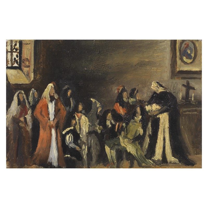 STUDY FOR THE DEATH OF CONRAD OF SWABIA oil on panel, 15.5x 23 cm on the reverse: inscribed “Uno studio per il quadro/ della morte di Corradino di Svevia/ originale di Cristiano Banti/ Io […] Banti”