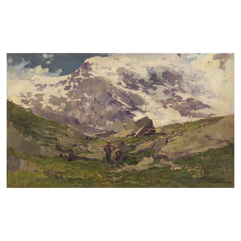 MOUNT ROSA oil on plywood, 26x43.5 cm on the reverse: signed and inscribed “Alpe Pedriola 2070 metri dal mare/ Monte Rosa”