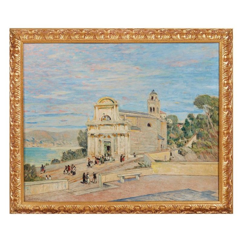 Galileo Chini (Firenze 1873 - 1956) SAN GIORGIO, PORTOFINO olio su compensato, cm 65x79 firmato e iscritto Firenze in basso a sinistra retro: iscritto Vi è una chiesetta.../ (Liguria San Giorgio/ di Portofino)/ Galileo Chini/ Firenze XV