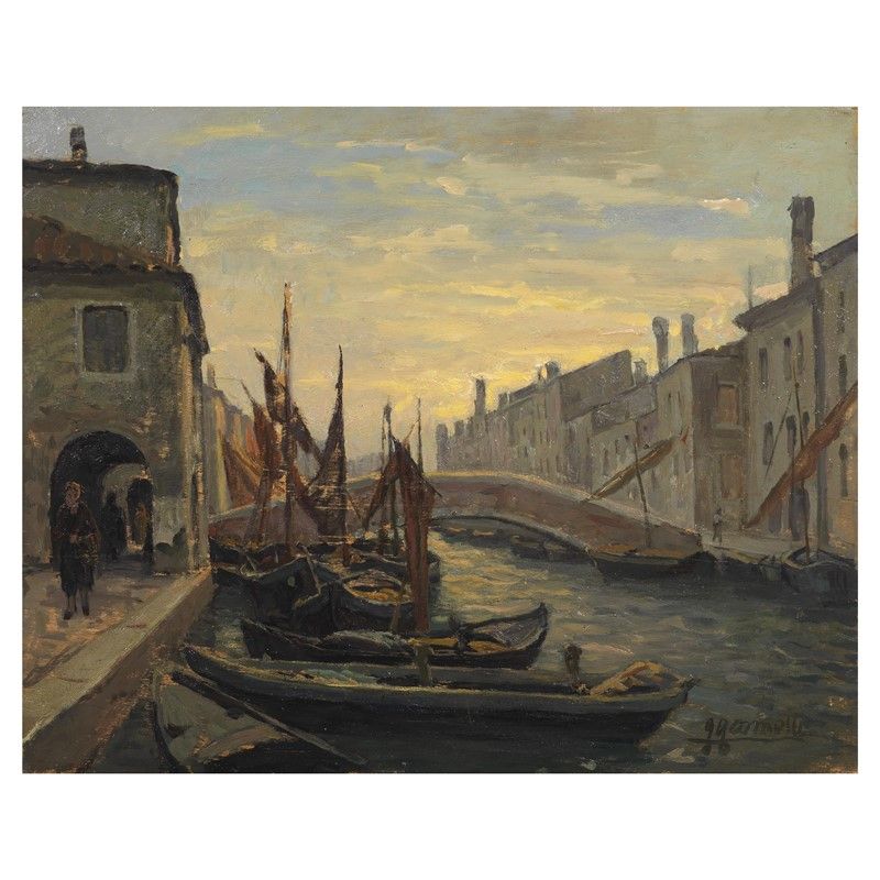 Gigi Comolli (Milano 1893 - 1976) VENEZIA olio su compensato, cm 40x50, senza cornice firmato in basso a destra retro: cartiglio della Galleria Salvetti di Milano