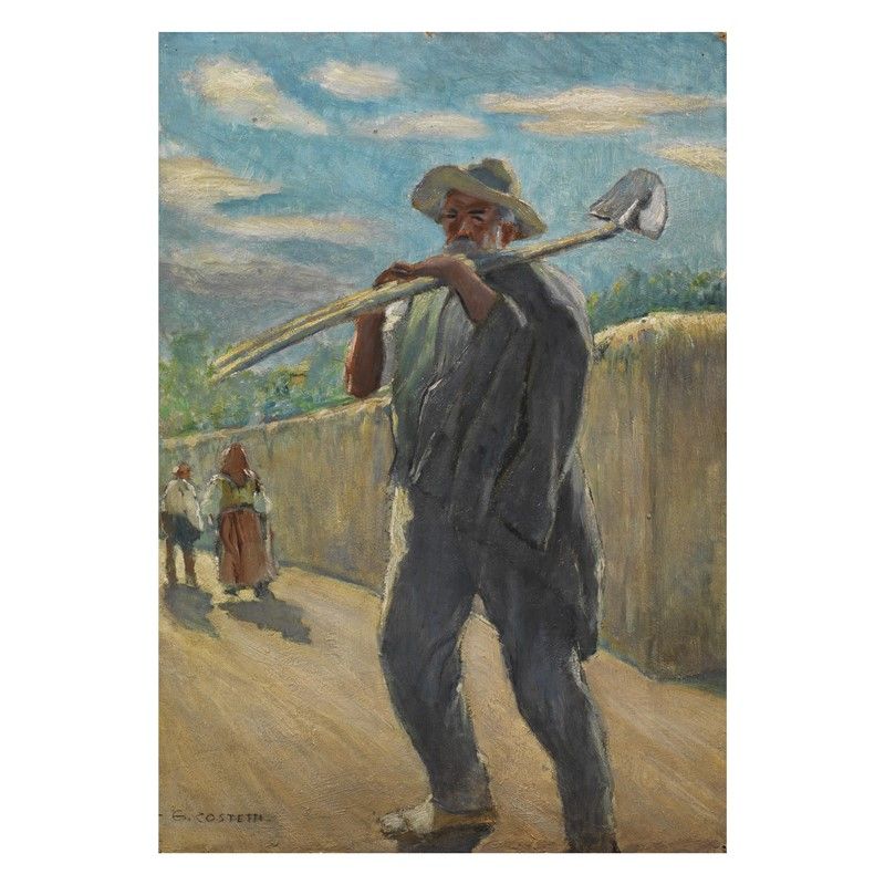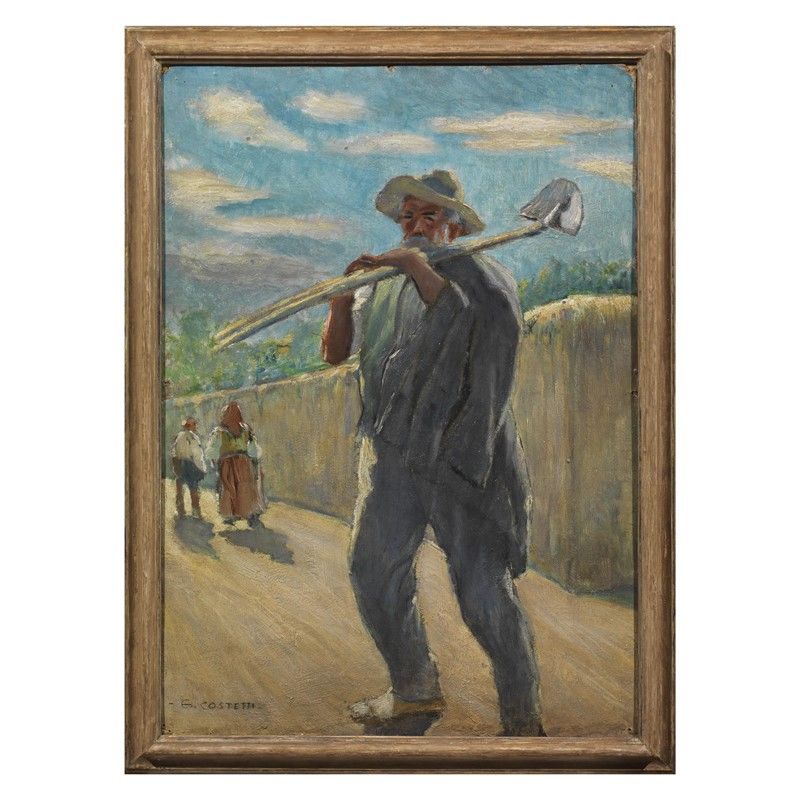 Giovanni Costetti (Reggio Emilia 1874 - Settignano 1949) IL CANTONIERE olio su cartone, cm 71x51 firmato in basso sinistra retro: iscritto “353” e titolato, iscritto, cartiglio “483”