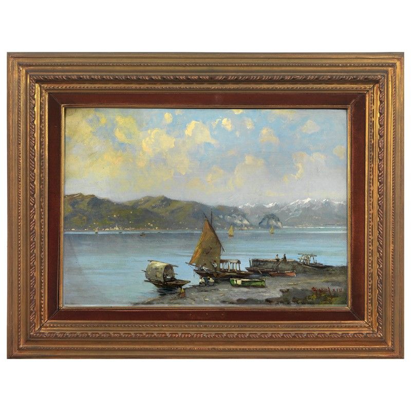 Lorenzo Gignous (Modena 1862 - Porto Ceresio 1958) BAVENO FERIOLO olio su cartone, cm 37x52,5 firmato e datato “XIII” in basso a destra retro: datato “aprile 34”