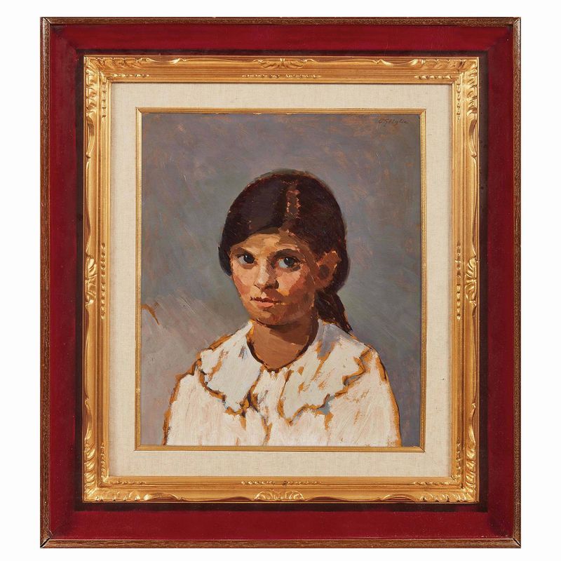 Oscar Ghiglia (Livorno 1876 - Firenze 1945) LA FIGLIA DEL MAESTRO FRAZZI olio su cartoncino, cm 35x43 firmato in alto a destra retro: cartiglio con iscritto 80