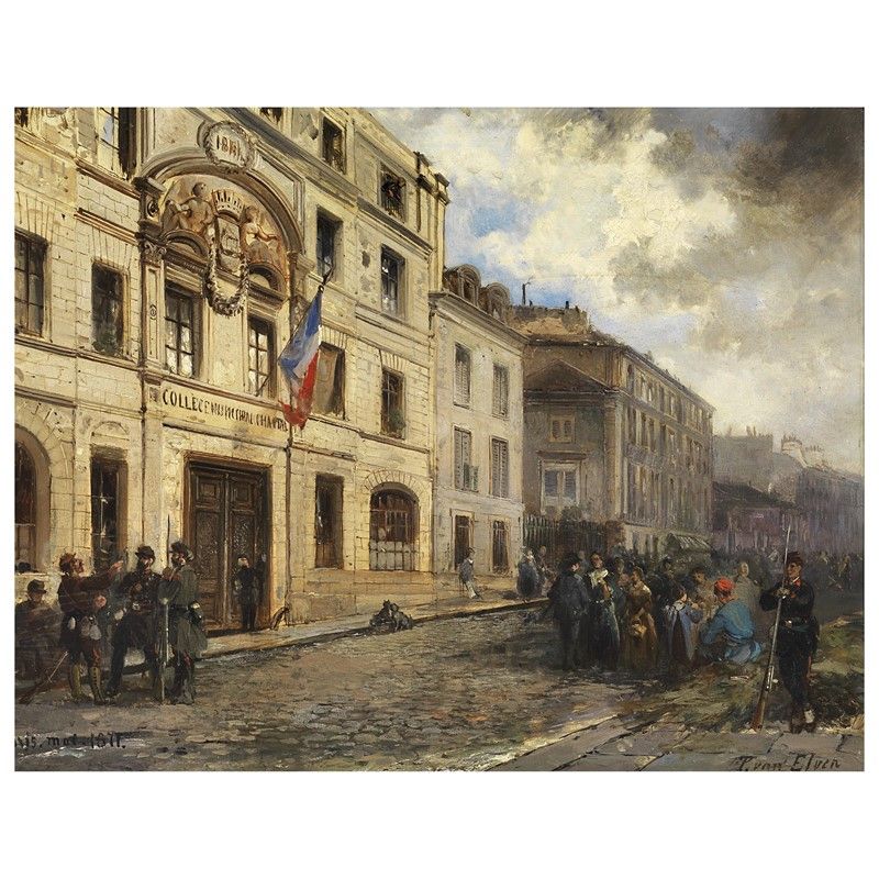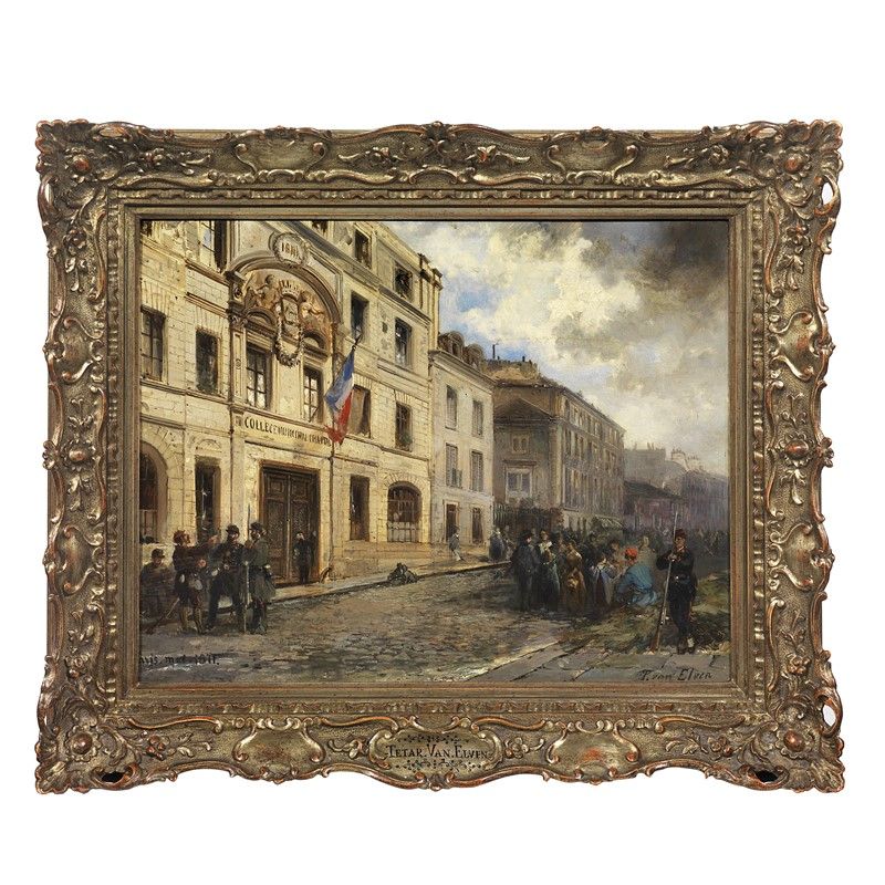 Pierre Tetar van Elven (Molenbeek-Saint-Jean 1828 - Milano 1908) LA COMUNE DI PARIGI olio su tavola, cm 32x40 firmato e datato “Paris. mai. 1871.” in basso a destra