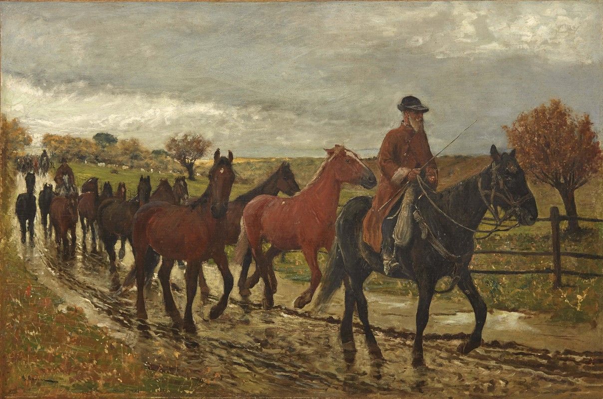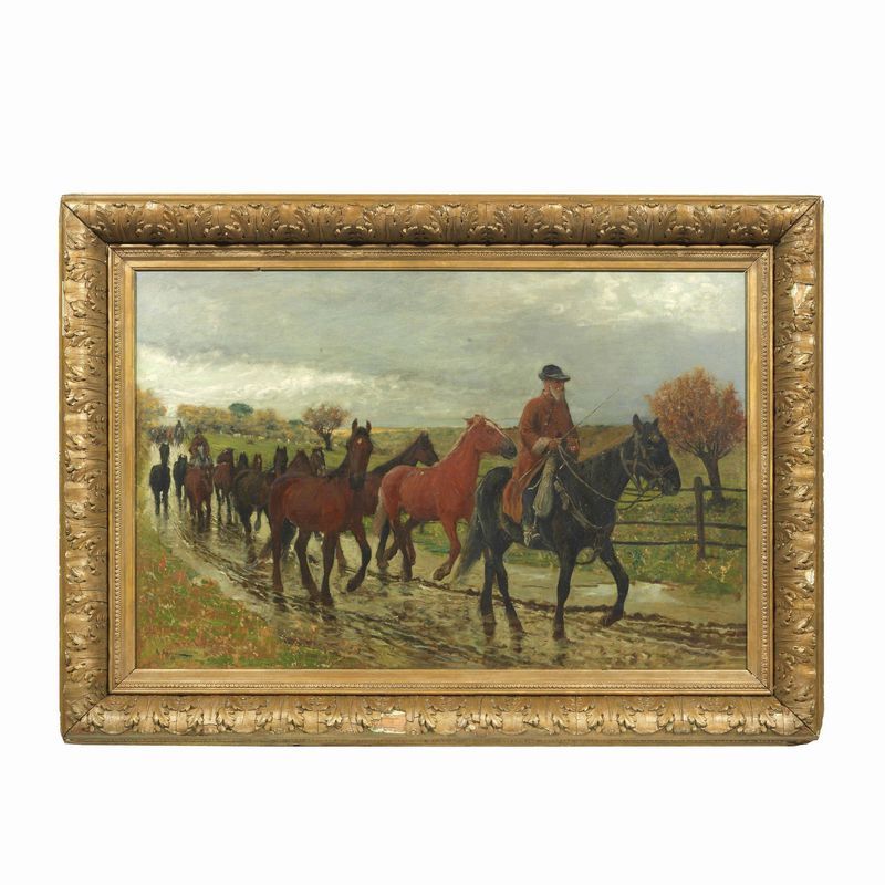Nei dipinti di Ruggero Panerai i cavalli sono spesso protagonisti, immortalati nelle circostanze più disparate e studiati con amore del vero. Una passione certo ereditata dal maestro Giovanni Fattori e che trova un luogo d’elezione in quella Maremma desolata che Panerai talvolta sembra ingentilire rispetto al maestro.