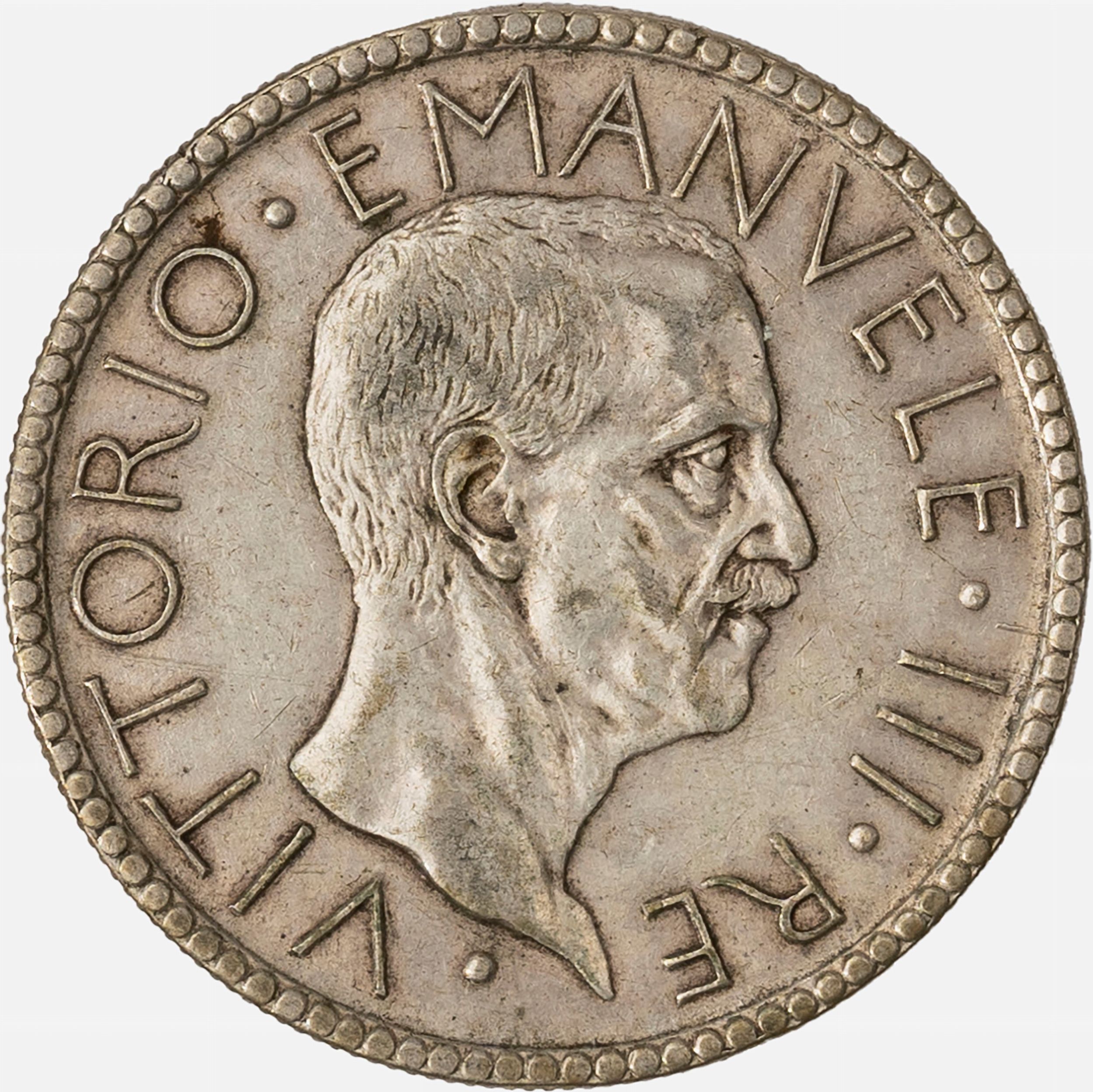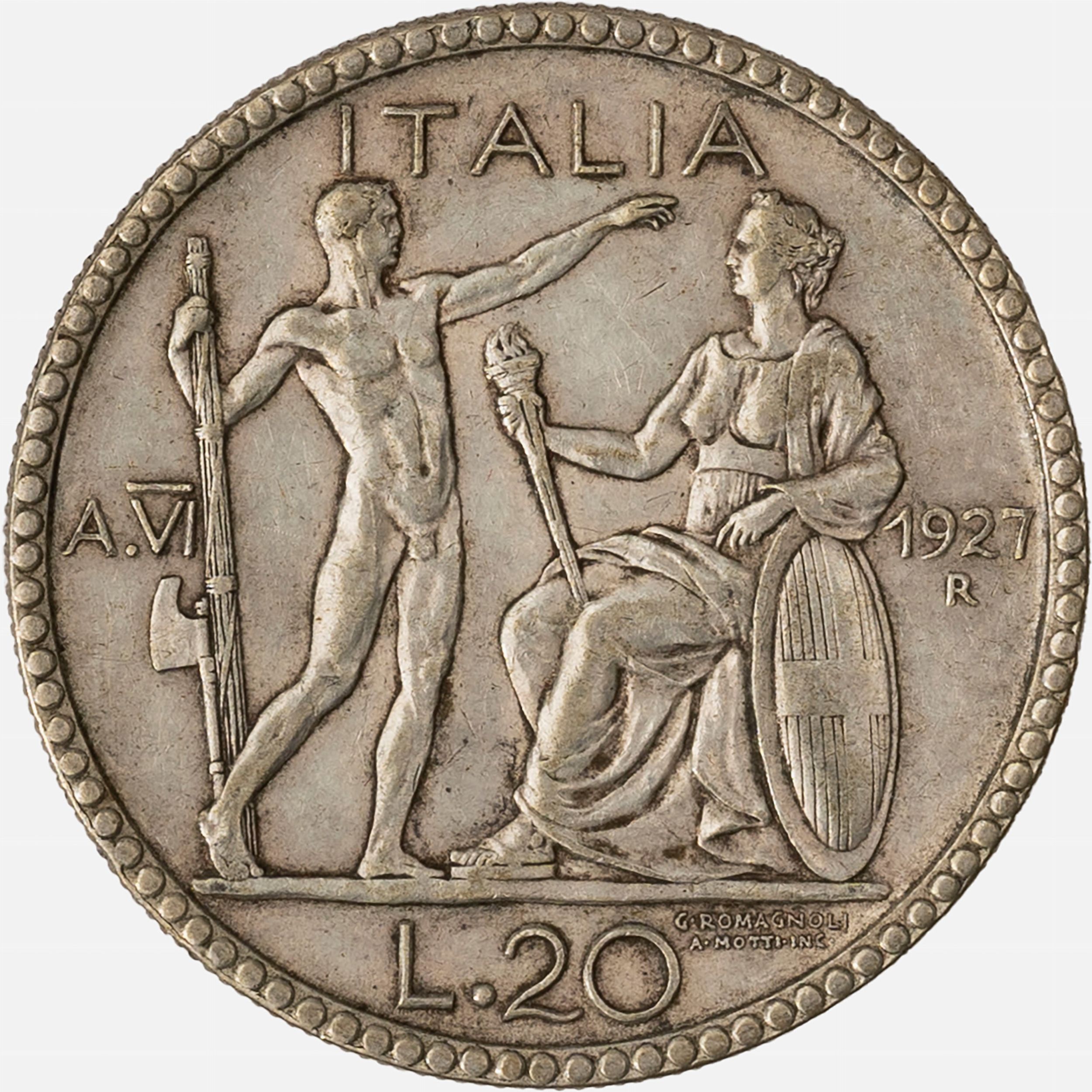 1927 D/ effigie del Re a destra R/ littore con fascio nella mano destra saluta romanamente l'Italia seduta con fiaccola e scudo sabaudo, Zecca di Roma; Metallo: AR. qBB