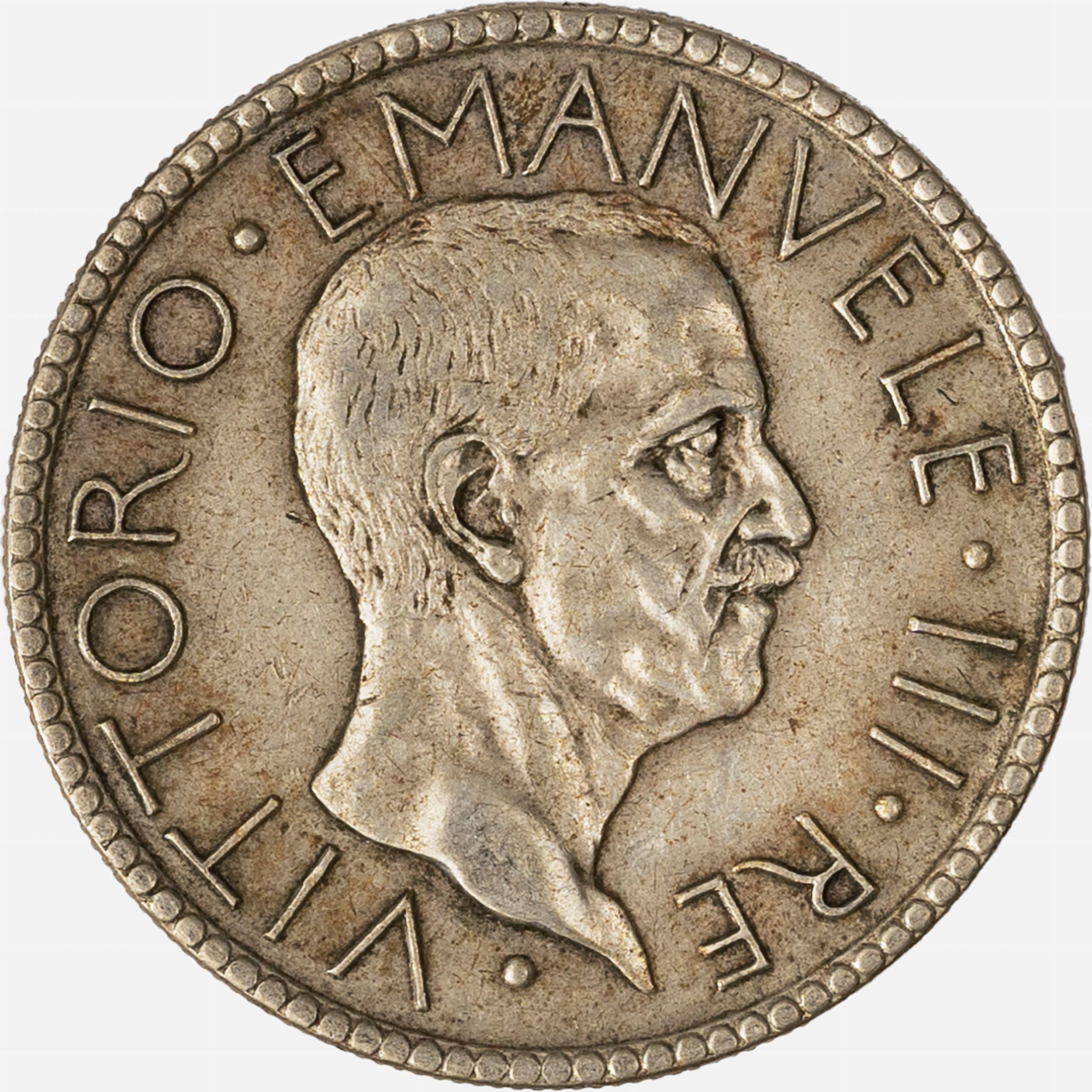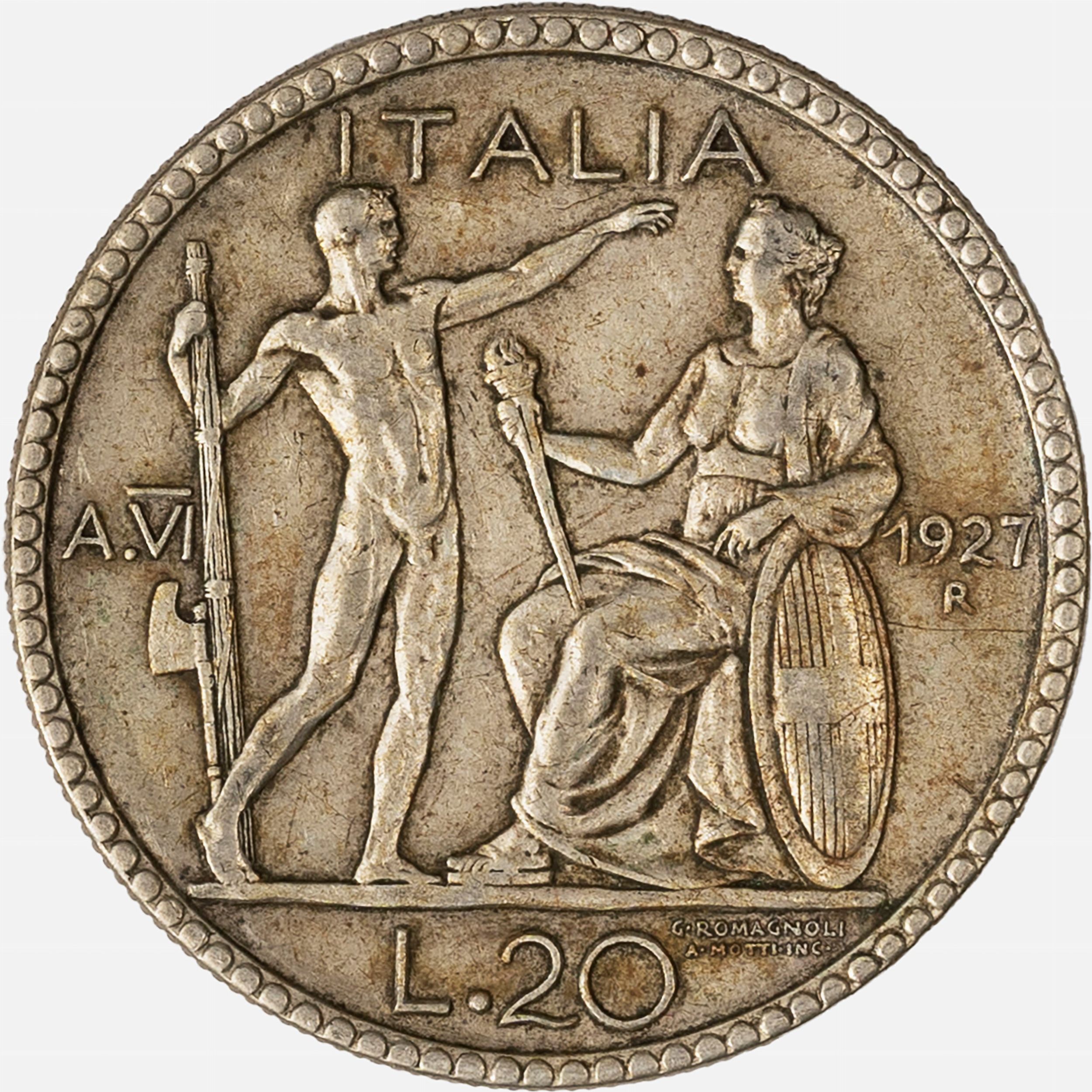 1927 D/ effigie del Re a destra R/ littore con fascio nella mano destra saluta romanamente l'Italia seduta con fiaccola e scudo sabaudo, Zecca di Roma; Metallo: AR. qBB