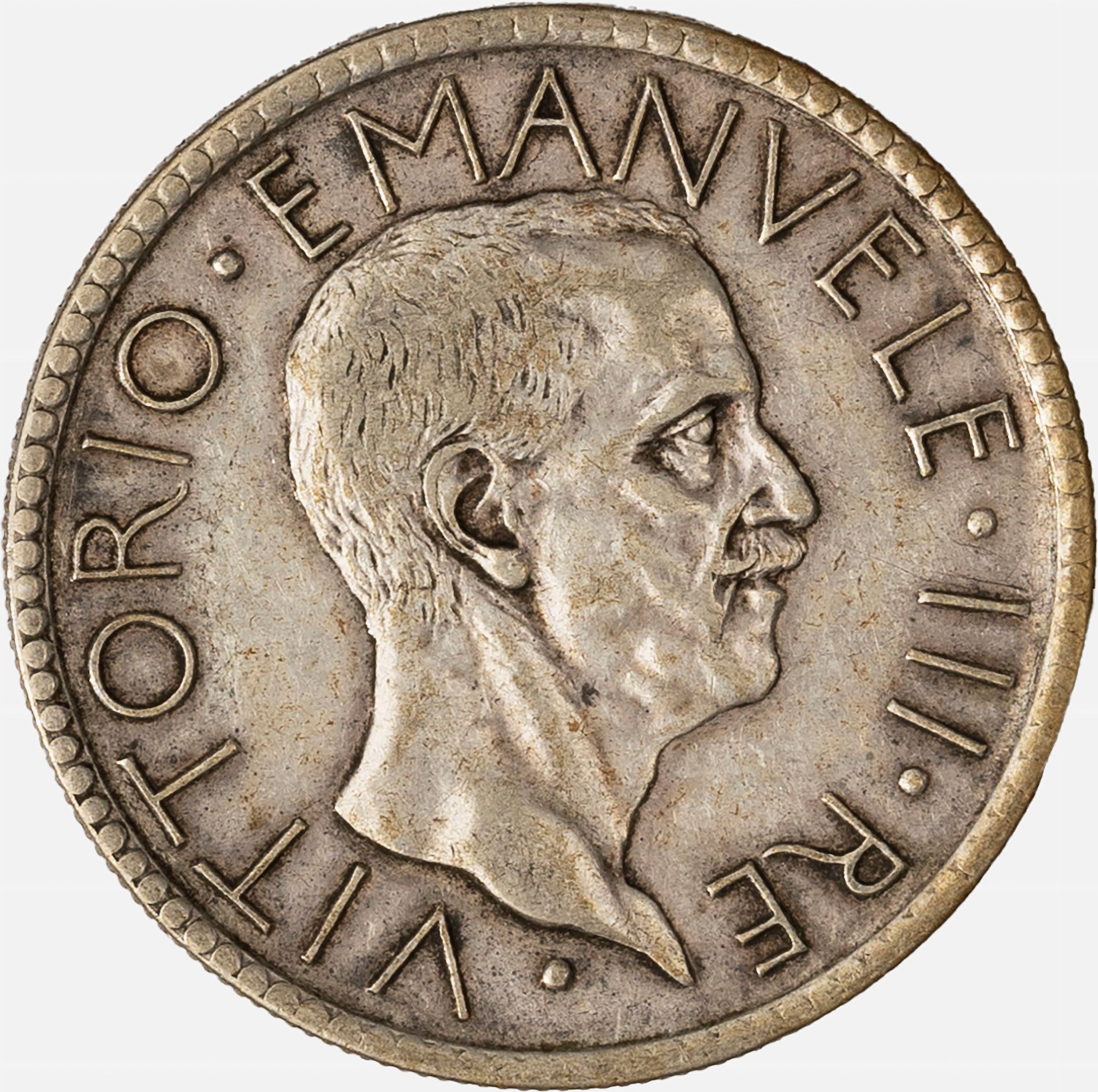 1928 D/ effigie del Re a destra R/ littore con fascio nella mano destra saluta romanamente l'Italia seduta con fiaccola e scudo sabaudo, Zecca di Roma; Metallo: AR. qBB