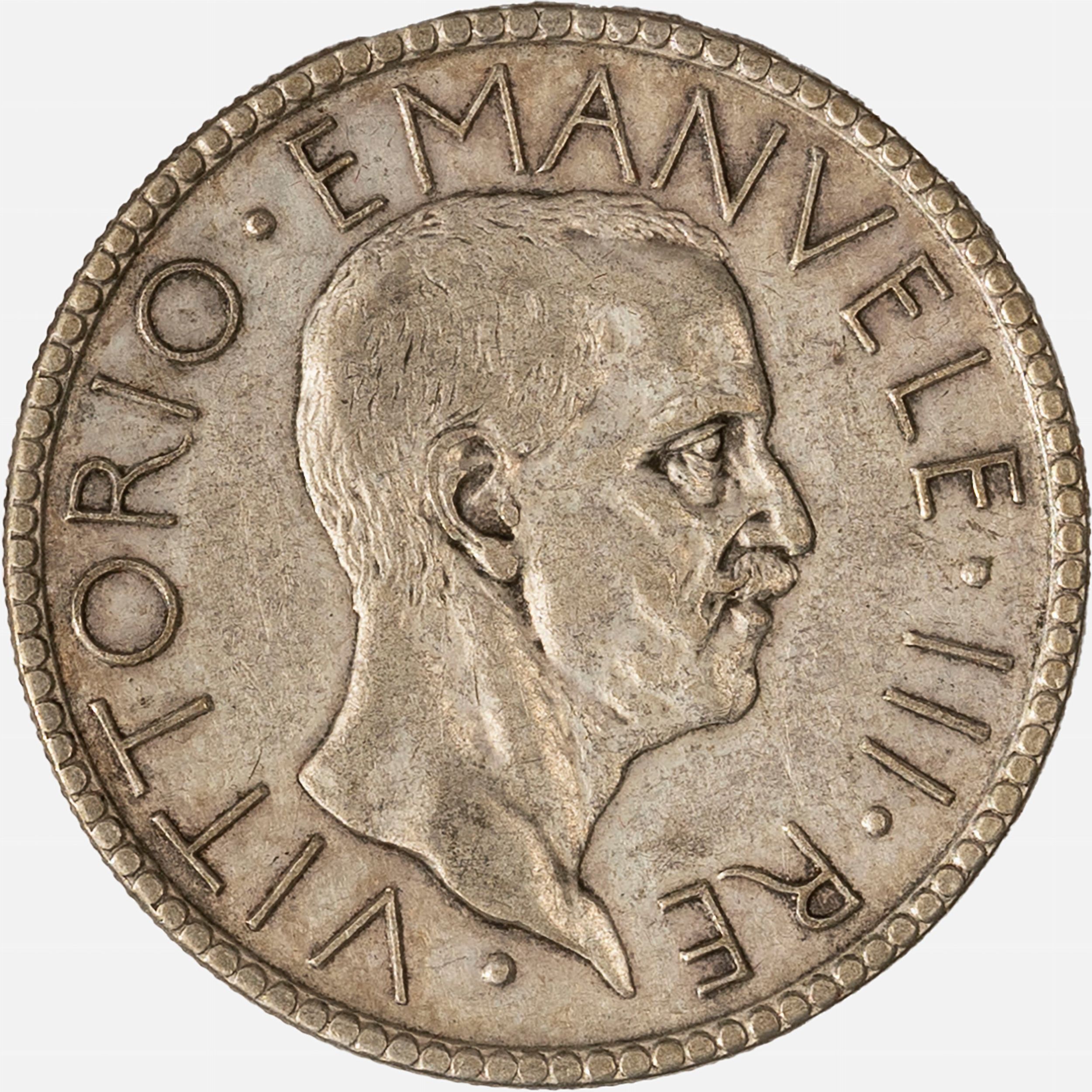 1928 D/ effigie del Re a destra R/ littore con fascio nella mano destra saluta romanamente l'Italia seduta con fiaccola e scudo sabaudo, Zecca di Roma; Metallo: AR. qBB