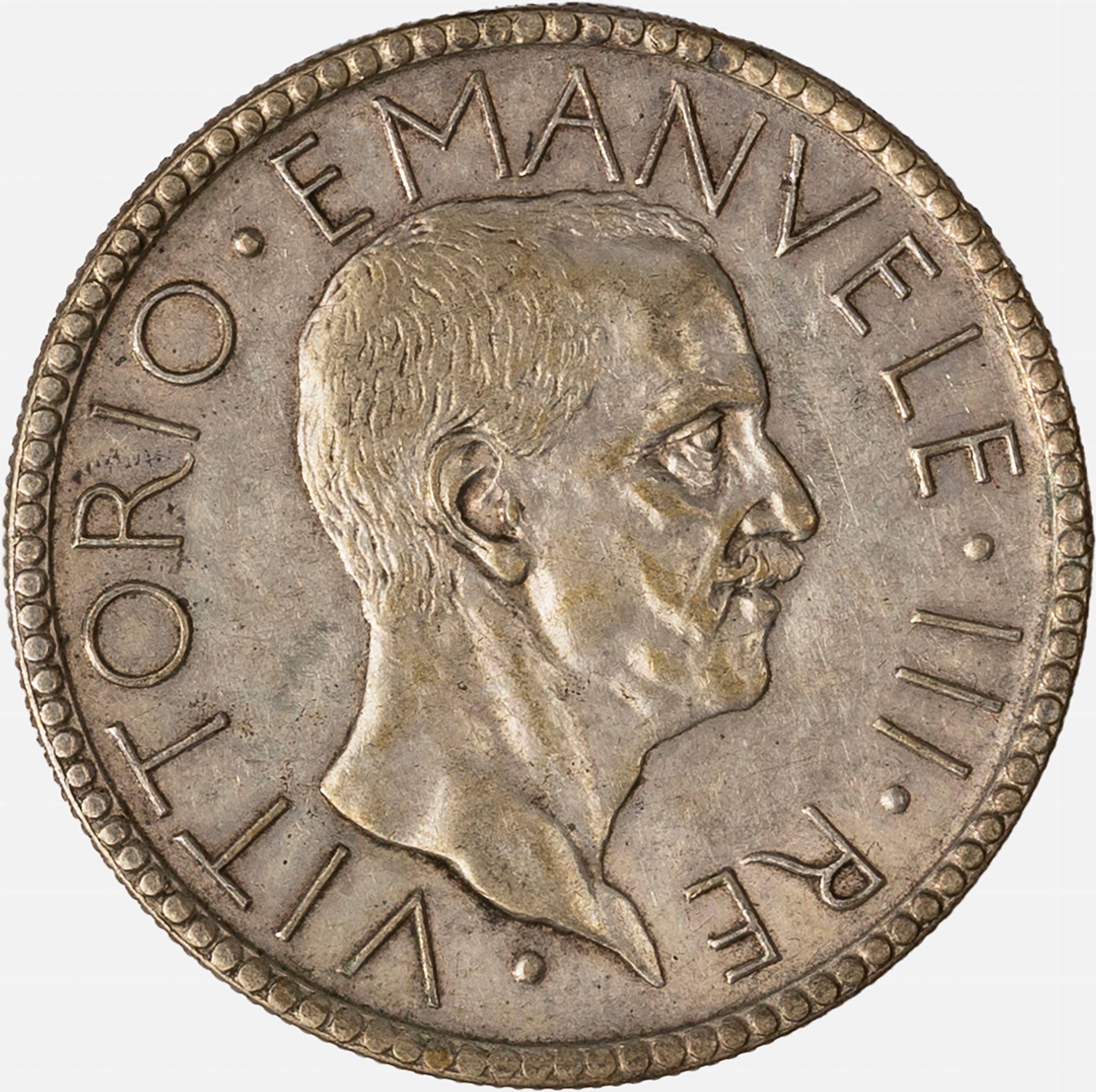 1928 D/ effigie del Re a destra R/ littore con fascio nella mano destra saluta romanamente l'Italia seduta con fiaccola e scudo sabaudo, Zecca di Roma; Metallo: AR. qBB