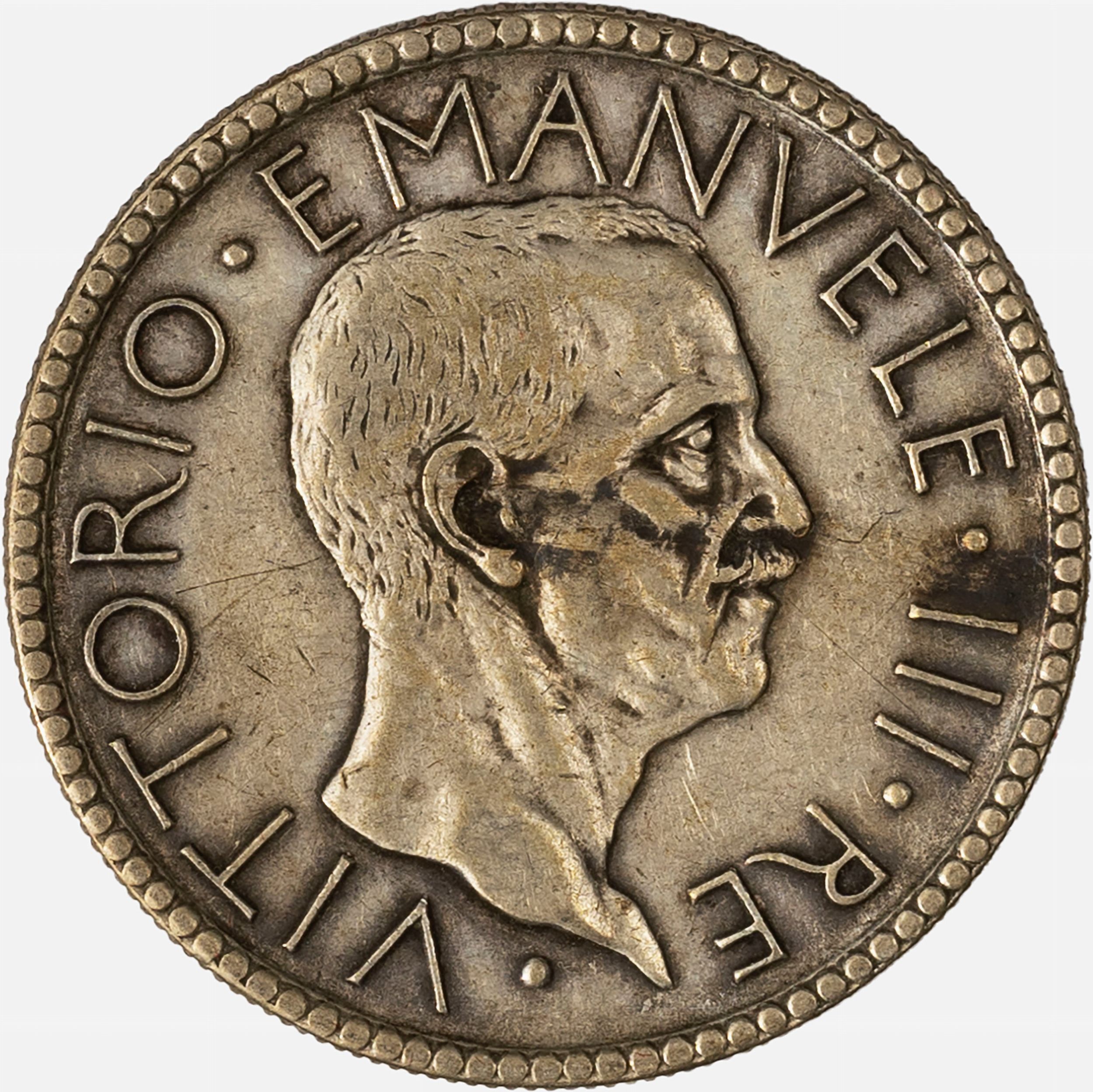 1928 D/ effigie del Re a destra R/ littore con fascio nella mano destra saluta romanamente l'Italia seduta con fiaccola e scudo sabaudo, Zecca di Roma; Metallo: AR. qBB