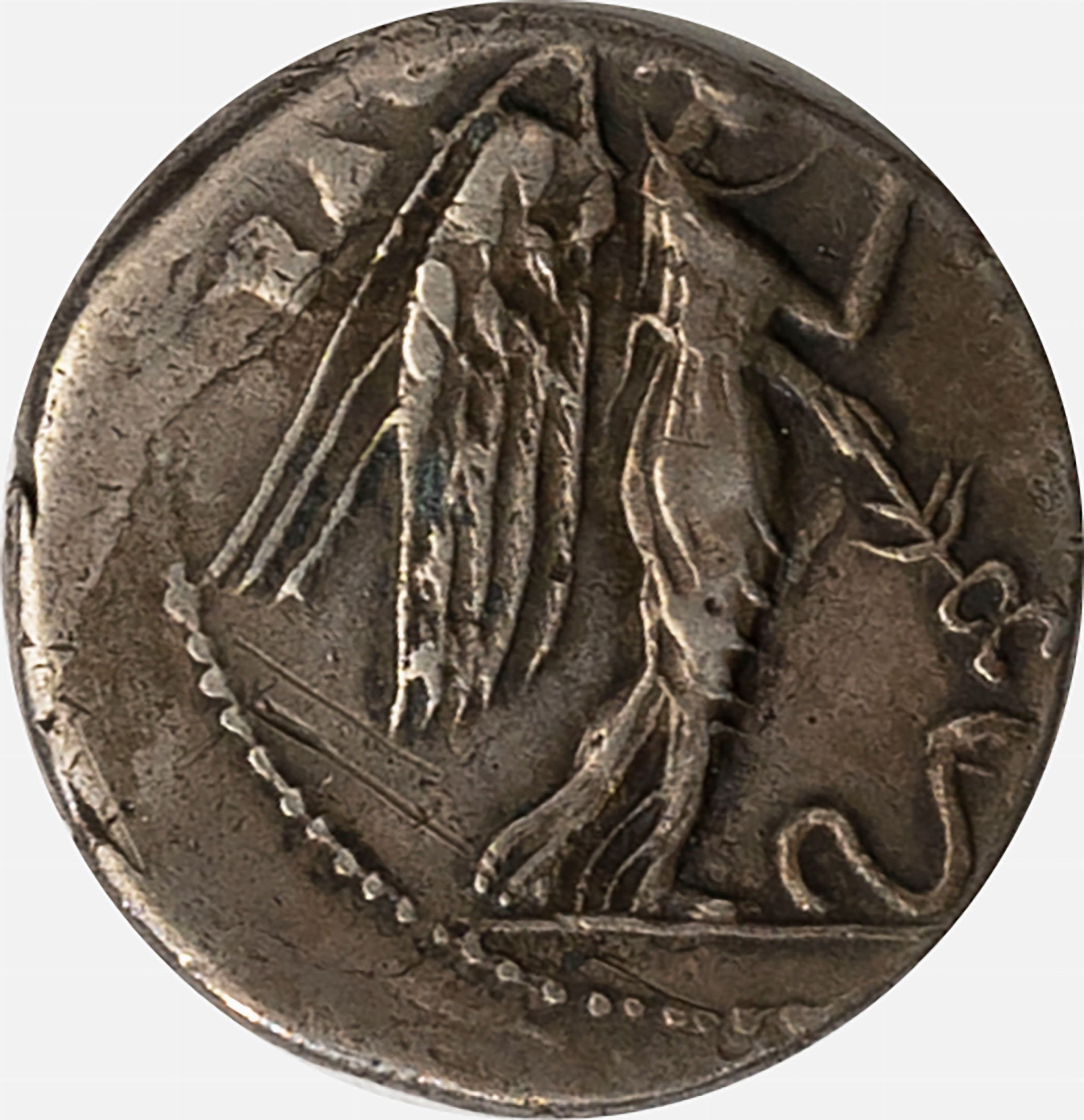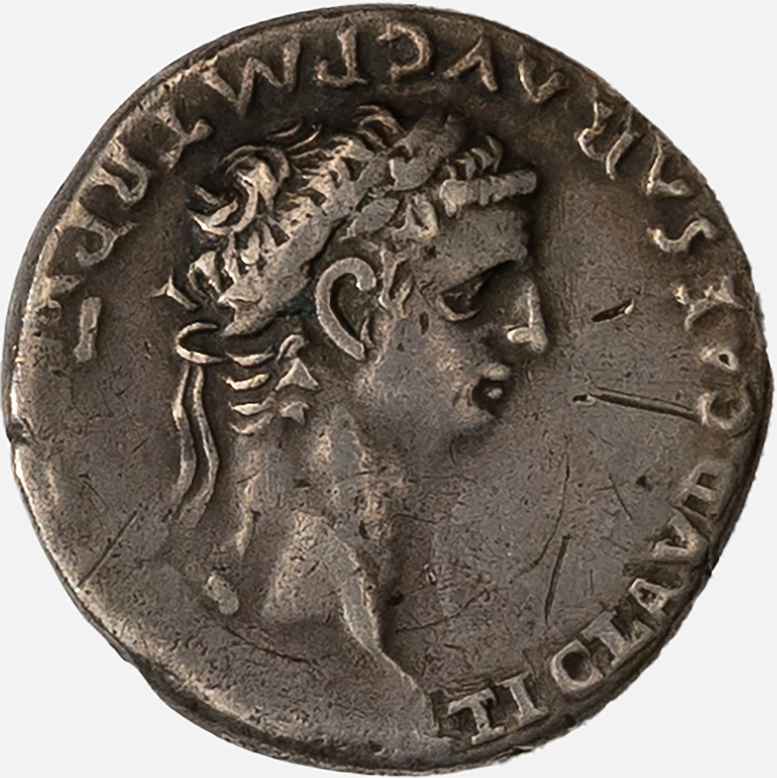 D/ testa laureata dell'Imperatore a d., R/ figura femminile alata, personificazione della Pax, in movimento verso d., preceduta da un serpente, tiene un caduceo con la mano s., Zecca di Roma, Rif. bibl. RIC I, 2 ed., p. 123 n. 47; Metallo: AR, gr. 2,74, diam. 18 mm., mBB