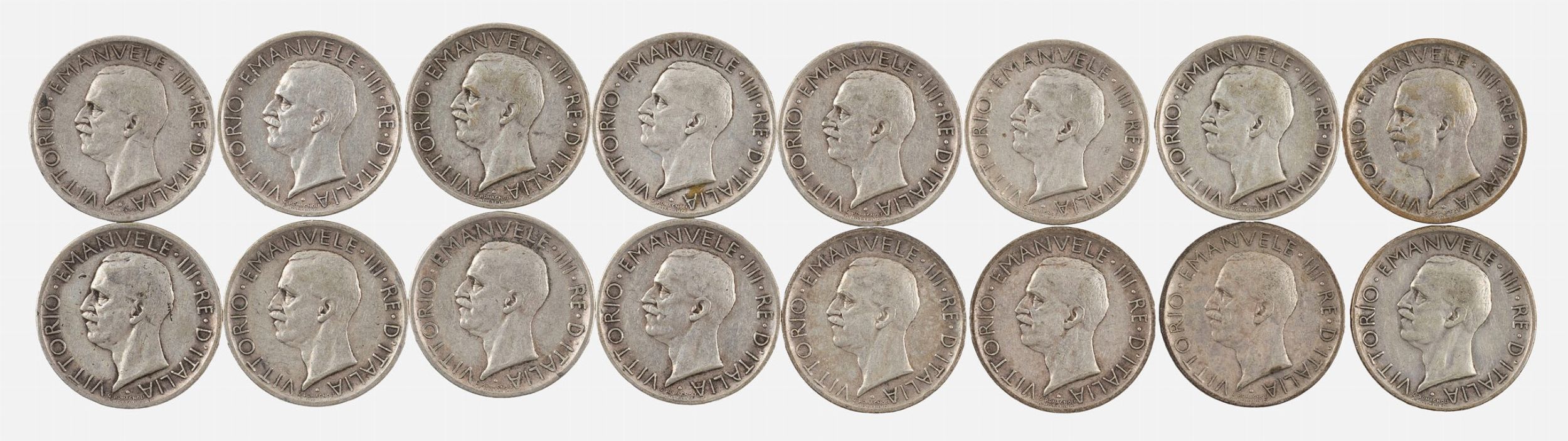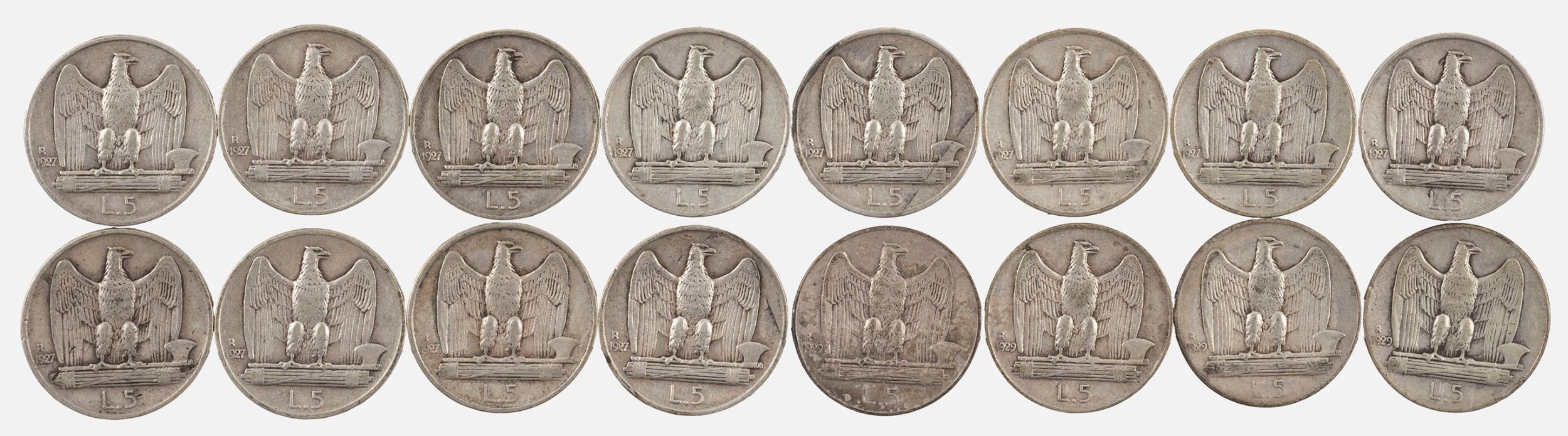 Lotto composto da 12 esemplari da 5 Lire Aquilotto 1927 e da 4 esemplari da 5 Lire [..]